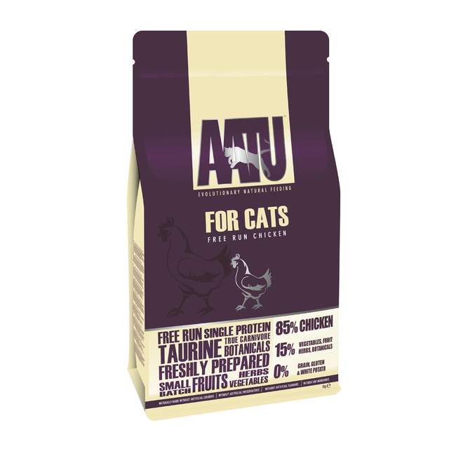 Sisaldab super-8 kombinatsiooni: 8 köögivilja, 8 puuvilja, 8 ürti ja 8 vürtsi ning taime, mis annavad hea tervise toitaineid. Aatu kassitoit on teravilja-, kartuli- ja gluteenivaba ning ei sisalda kunstlikke värv-, maitse- ja GM0-aineid. Aatu kuivtoit järgib 85/15-põhimõtet, et koostises peab olema 85% liha ning 15% juur- ja puuvilju, ürte ja maitsetaimi.