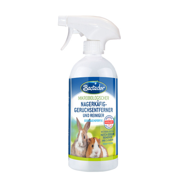3. Tugev, ebameeldiv lõhn väikeloomade puuri ümber: Pihustage Bactadori lõhnaeemaldajat ümbritsevasse piirkonda. Laske sellel umbes 5 minutit mõjuda ja pühkige üleliigne.