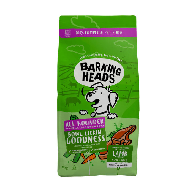 Barking Heads koera täissööt All Hounder Bowl Lickin Goodness lambalihaga. Täissööt täiskasvanud koertele.