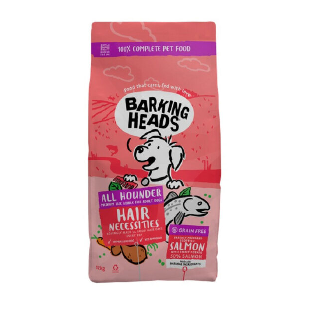Barking Heads koera täissööt All Hounder Hair Necessities lõhega. Täissööt täiskasvanud koertele.