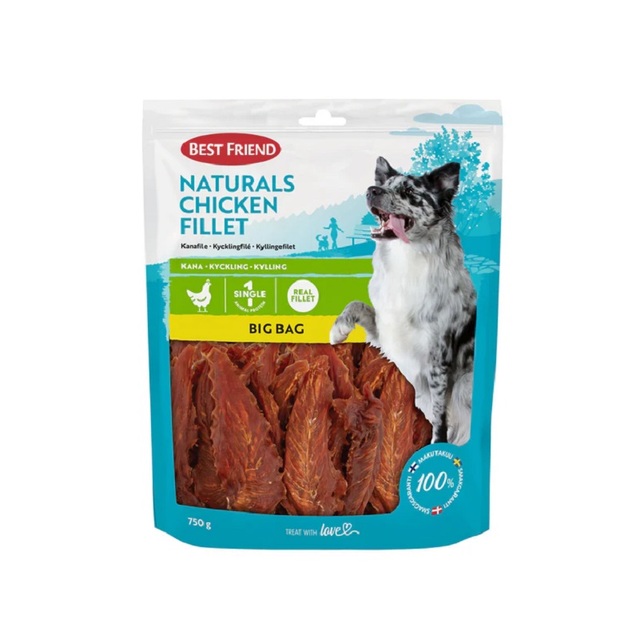 Koostis: kanafilee 100%, taimevalgud, glütseriin, tärklis, sorbitool. Analüütiline koostis: toorproteiinid 63%, toorrasvad-ja õlid 5%, toorkiud 4%, toortuhk 5%, niiskus 20%.