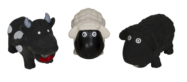 Lõbus mänguasi koertele, valikus erinevad farmiloomad.