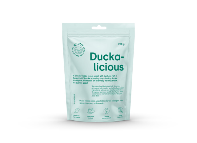 Buddy pehmed maiused koertele värskest pardist ja rosmariinist, rikkad valgu ja oomega-rasvhapete poolest. Koostisosad on 100% looduslikud ning vabad lisaainetest, teraviljast ja GMO-dest. Ideaalne preemiaks treeningu ajal.