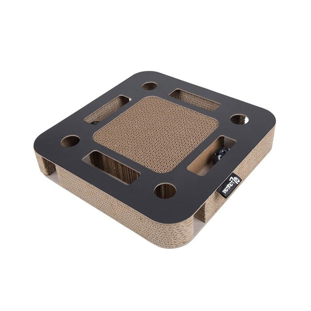 District 70 Spy on interaktiivne mänguasi kassidele ja ideaalne koht ka küünte teritamiseks. Toote sees on kellukesega pall, millele lemmik saab ligi erinevate avade kaudu.