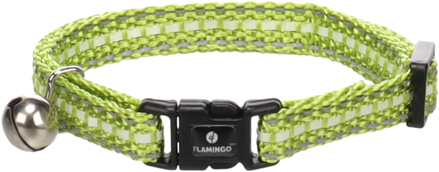 Flamingo kassipoja kaelarihm on reguleeritav ja mugava turvaklikiga pandlaga. Helkurmaterjal tagab, et teie kass on ka pimedas nähtav. Kaelarihma küljes on kelluke.
