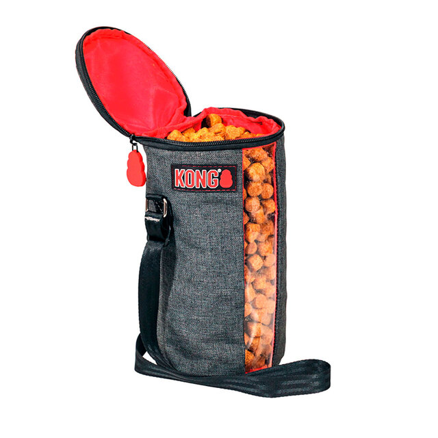KONG maiusekott sobib maiuste või krõbinate kaasavõtmiseks. Tänu läbipaistvale osale on hea näha, millal kotti uuesti täitma peaks.