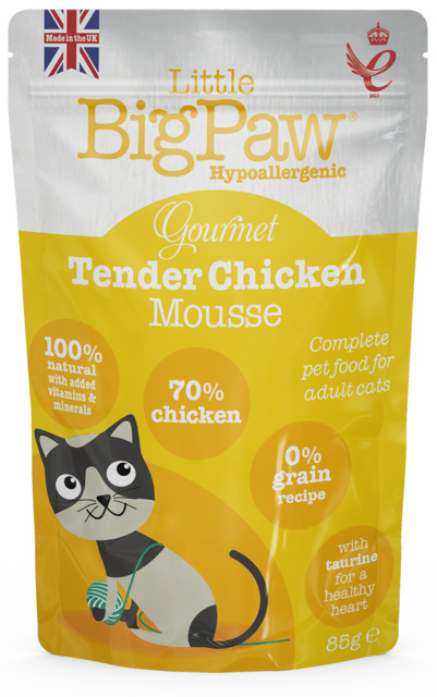 Little Bigpaws kassi pasteet kanaga. Tegemist on täissöödag. 100% naturaalne, lisatud vitamiinide ja õlidega ning 70% kana. Teraviljavaba ja hüpoallergeenne. Valmistatud maitsvast värskest kanast – väga toitev, kergesti seeditav tailiha.