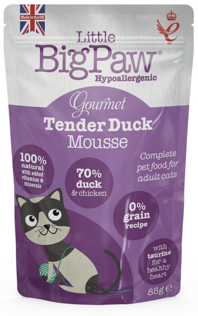 Little Bigpaws kassi pasteet pardiga. Tegemist on täissöödag. 100% naturaalne ning 70% liha. Teraviljavaba ja hüpoallergeenne. Valmistatud pehmest värskest pardilihast – väga toitev, kergesti seeditav ja ülimalt maitsev. Vajalikud vitamiinid ja mineraalid: Sealhulgas A, D ja E, mis tagavad terve immuunsüsteemi ning tugevad hambad ja luud. Oomegaõlid ja -rasvad: Vajalikud rasvhapped suurepärase naha, liigeste hoolduse ja suurepärase läikiva karvkatte jaoks. Tauriin: Oluline terve südame ja hea nägemise jaoks