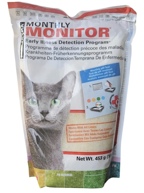 Monthly Monitor kassiliiva lisand, mis aitab kassiomanikel jälgida oma kassi tervist. Toode muudab värvi vastavalt ph-tasemele lemmiklooma uriinis.