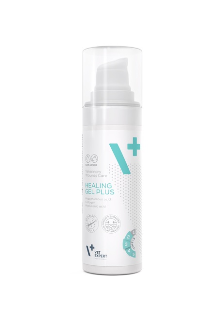 VETEXPERT HAAVAGEEL HEALING PLUS 30ML. Hüdrogeel haavadele, mis toetab haava paranemisprotsesse kassidel ja koertel. Võib kasutada ka armistunud naha pehmendamiseks ja silumiseks. Toote toime põhineb hüpokloorsel happel, mis loob soodsd tingimused normaalseks haava paranemiseks. Koostises on ka hüaluroonhape, mille niisutavad omadused toetavad naha regeneratsiooni. Geel kaitseb haava väliste tegurite eest. Kollageen, mis on keratinotüütide ehitusmäterjal, toetab naha uuenemist ja muudas seda elastsemaks, aitab siluda armistunud ala nahastruktuuri. Hinokitioolil on antioksüdantsed omadused. Kasutamine: Manustada puhastatud ja desinfitseeritud nahale, mitte hõõruda. Vajadusel katta ala haavasidemega