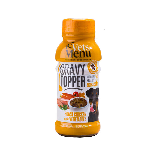 VETS MENU CHICKEN. Täiendsööt igas vanuses koertele. Praekana ja köögiviljadega kaste on valmistatud maitsva naturaalse kana maitsega ja vaid parima kvaliteediga koostisosadega. Sisaldab segu oomega-rasvhapetest ja E vitamiinist, et toetada teie lemmiku naha ja karvkatte tervist. Ei sisalda säilitusaineid ega kunstlikke maitseaineid.
